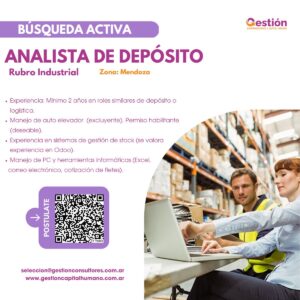 - Experiencia: Mínimo 2 años en roles similares de depósito o logística.