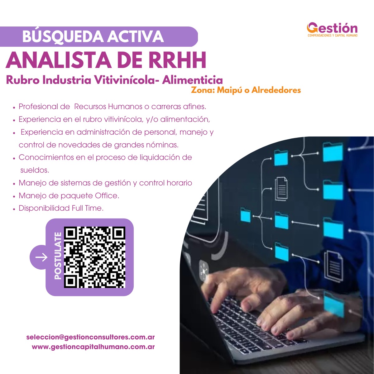 Enviar CV a seleccion@gestionconsultores.com.ar