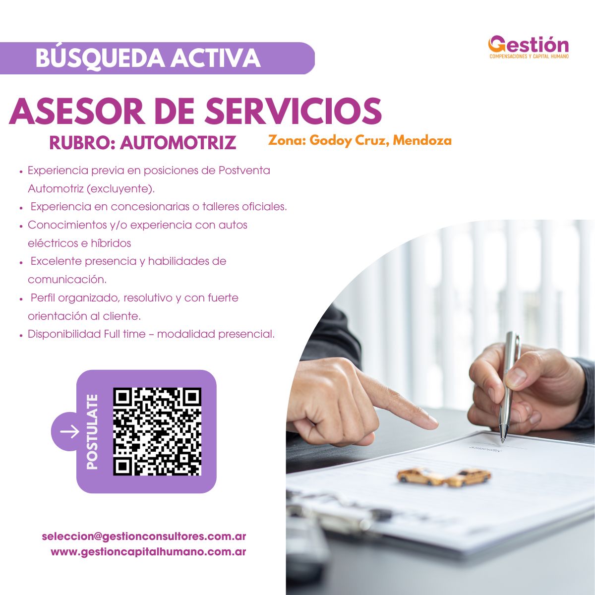 • Experiencia previa en posiciones de posventa automotriz (excluyente)