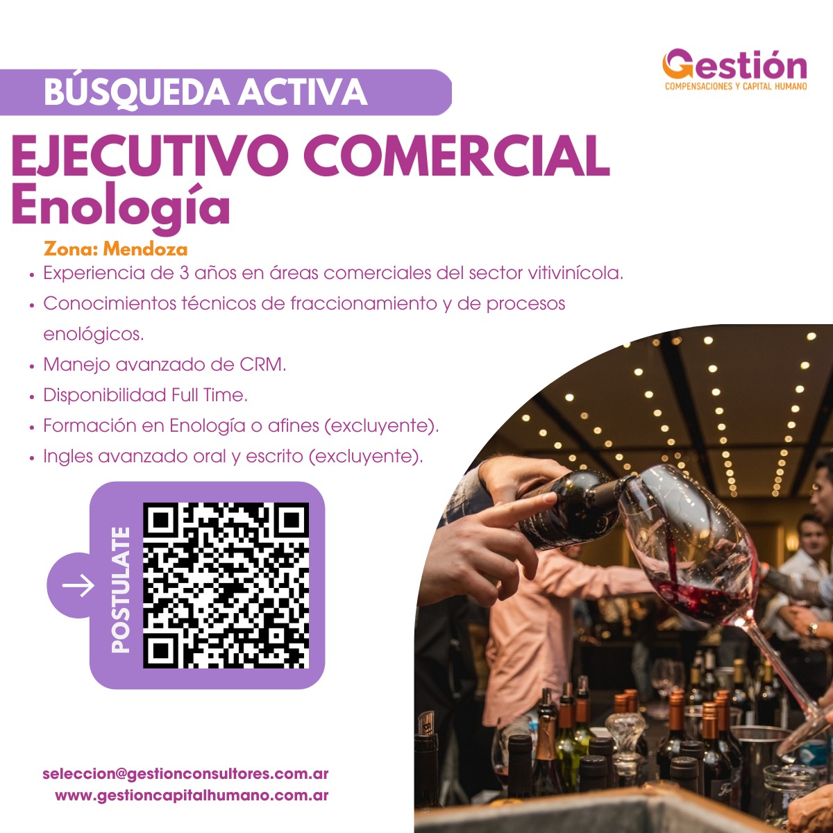 - Experiencia de 3 años en áreas comerciales del sector vitivinícola.