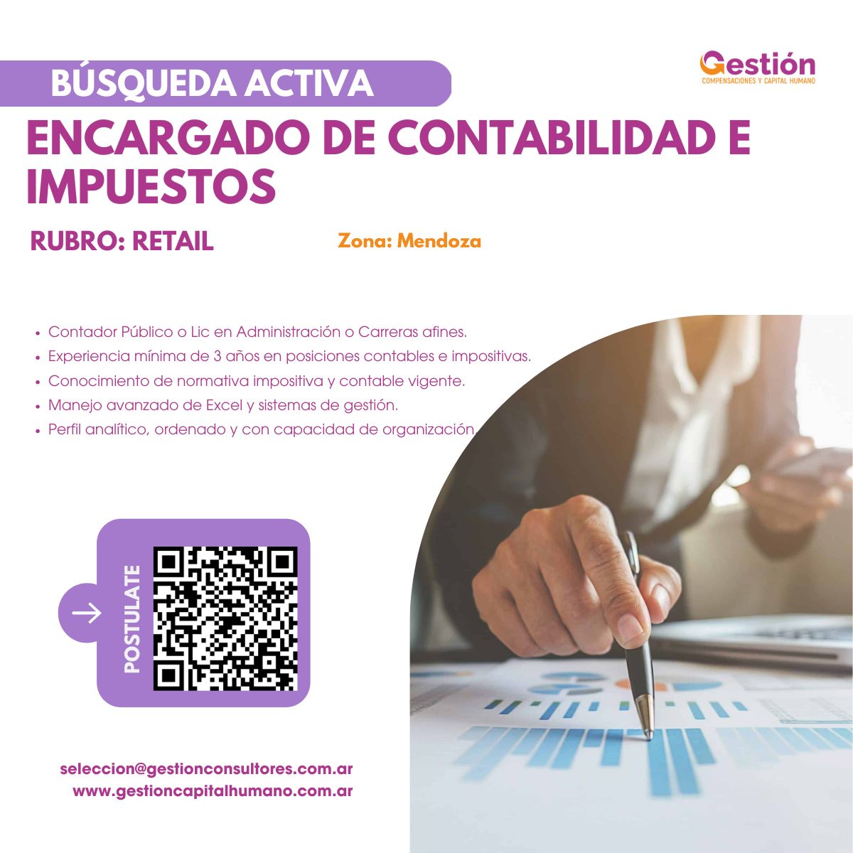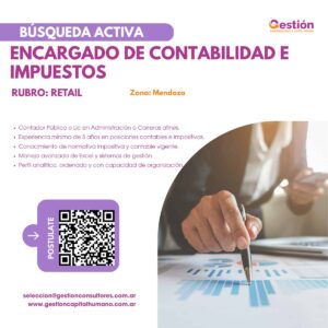Mendoza Posted on 18/03/2026 Requisitos: Contador Público o Lic en Administración o Carreras afines. Experiencia mínima de 3 años en posiciones contables e impositivas. Conocimiento de normativa impositiva y contable vigente. Manejo avanzado de Excel y sistemas de gestión. Perfil analítico, ordenado y con capacidad de organización Para aplicar para este trabajo, por favor, visite […]