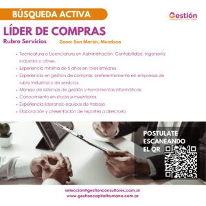 San Martín, Mendoza Posted on 24/12/2025 Requisitos: Tecnicatura o Licenciatura en Administración, Contabilidad, Ingeniería Industrial o afines. Experiencia mínima de 5 años en roles similares. Experiencia en gestión de compras, preferentemente en empresas de rubro industrial o de servicios. Manejo de sistemas de gestión y herramientas informáticas. Conocimiento en stocks e inventarios. Experiencia liderando equipos […]